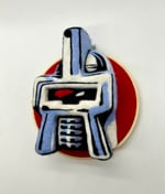 Cylon is 7” x 6.5” and is mounted on an embroidery loop for easy hanging. He is a one of a kind needlefelt sculpture made with ethically sourced wool that has been colored with eco friendly dyes.